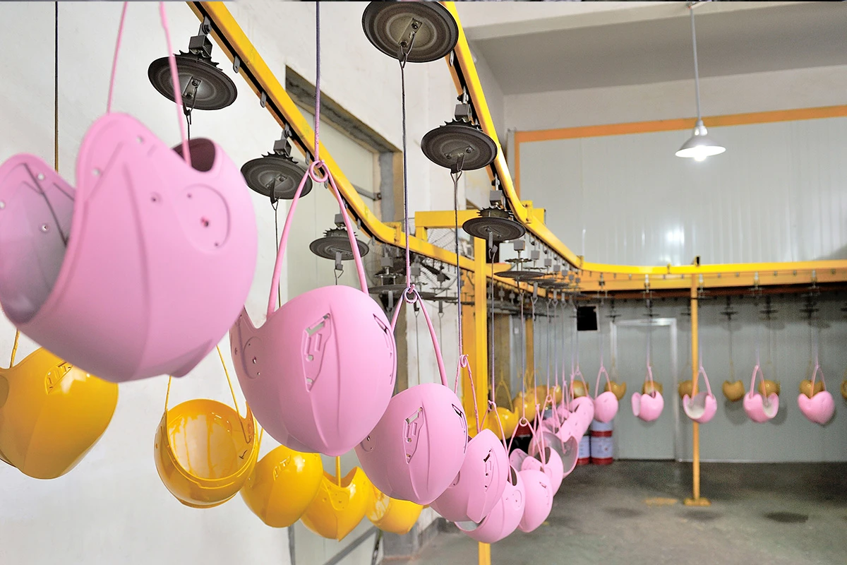 野马工厂占地65000平方米,包含注塑、基材、喷漆、装配等全套生产线,年产头盔400万。